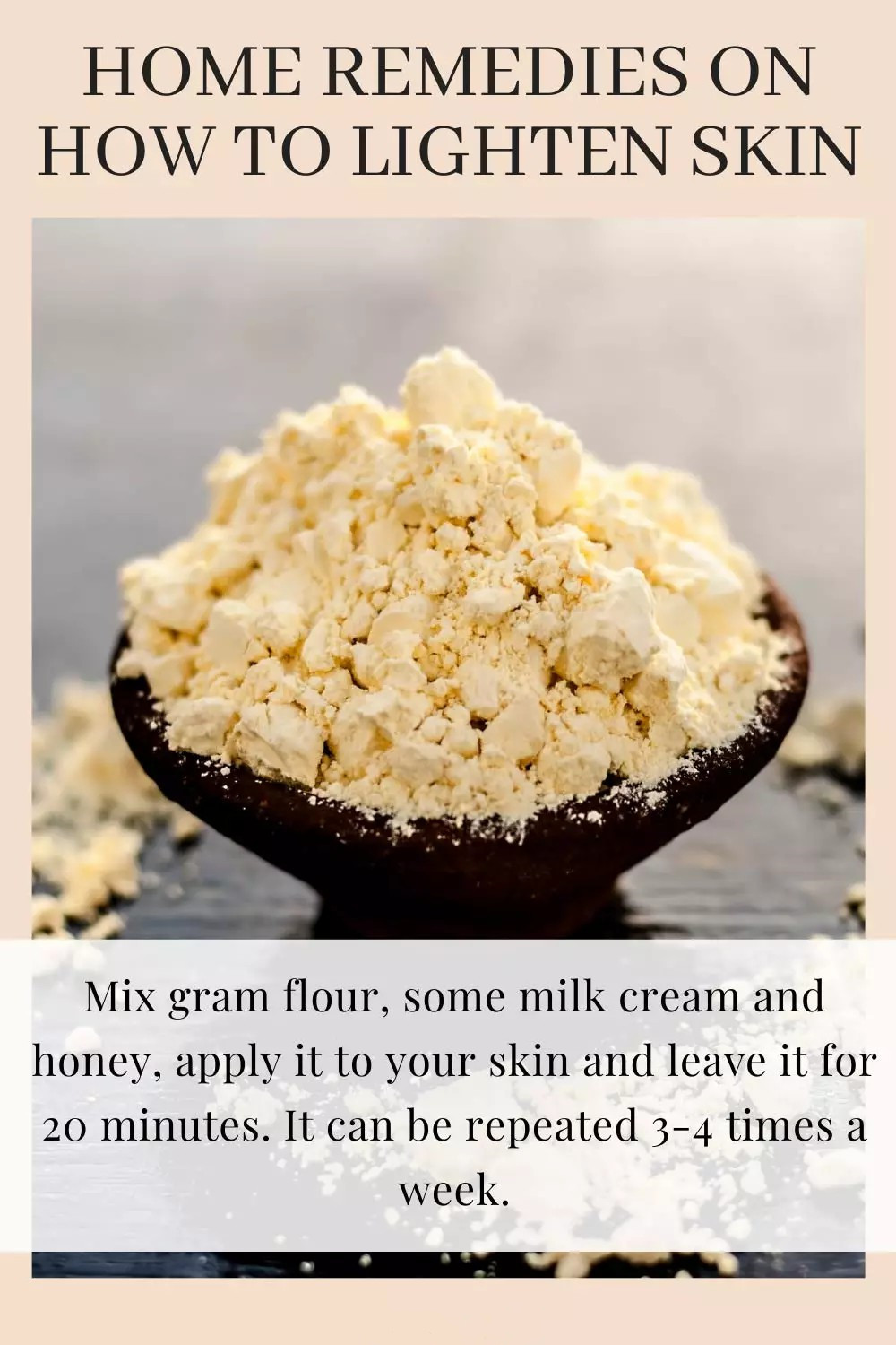 Gram flour is used extensively in Asia as an exfoliating agent and to lighten skin tone. It helps remove dead skin cells and excess oil and adds essential nutrients, giving skin a natural glow. Mix gram flour with some milk cream and honey, apply it to your skin, and leave it for 20 minutes. This can be repeated 3-4 times a week.