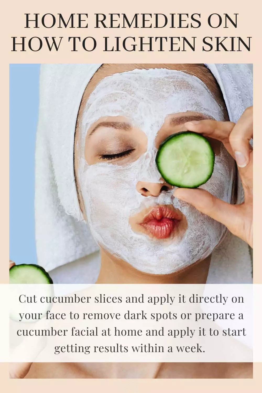 The cooling and soothing effects of cucumbers help make skin fair and flawless. Cucumber contains collagen, a protein that helps keep skin firm. You can cut cucumber slices and apply them directly on your face to remove dark spots, or prepare a cucumber facial at home using cucumber as a base mixed with honey and lemon juice, and apply it daily to get a light skin tone.